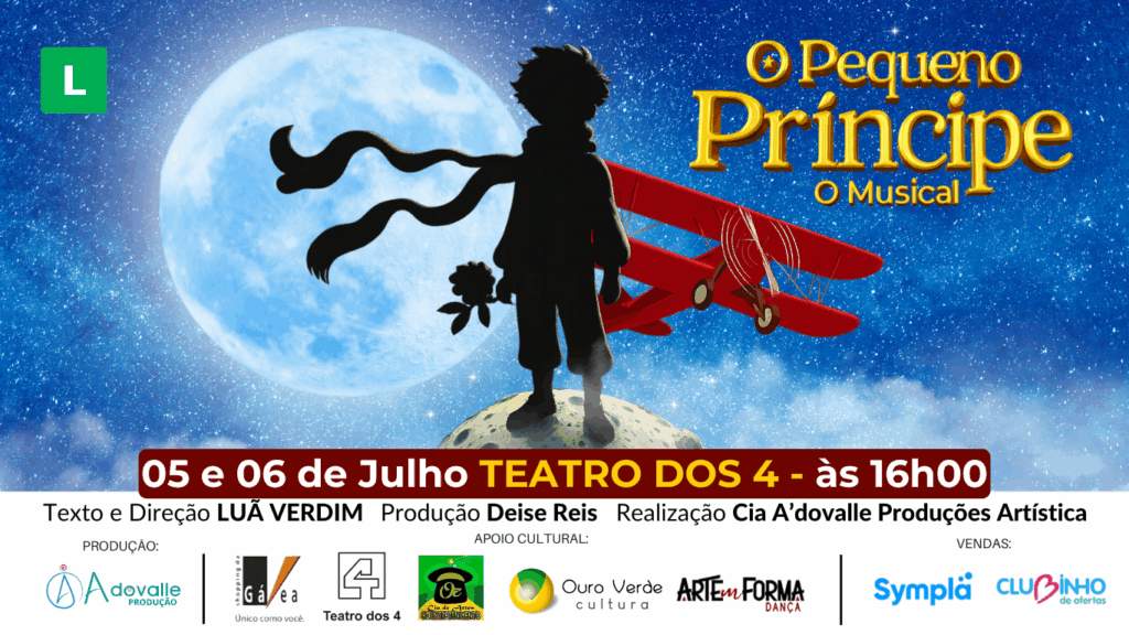 Sinopse – de forma cantada e contada, o espetáculo leva o público para uma viagem mágica ao deserto, com muitas cores e sons, o Pequeno Príncipe que já encanta gerações há anos, propõe dessa vez uma nova versão musical. Valendo-se de canções originais, texto divertido, linguagem infantil e dinâmica, dinamismo, coreografias marcantes e atores carismáticos, o espetáculo narra de forma bem humorada a clássica história que todos já conhecem, nesta adaptação o Pippin viaja por diversos planetas em busca de respostas e atenção. Ele conhece uma Rosa temperamental, uma Raposa que se torna uma grande amiga, um aviador que precisa de ajuda para voltar para sua rota de viagem e muitos outros personagens.
