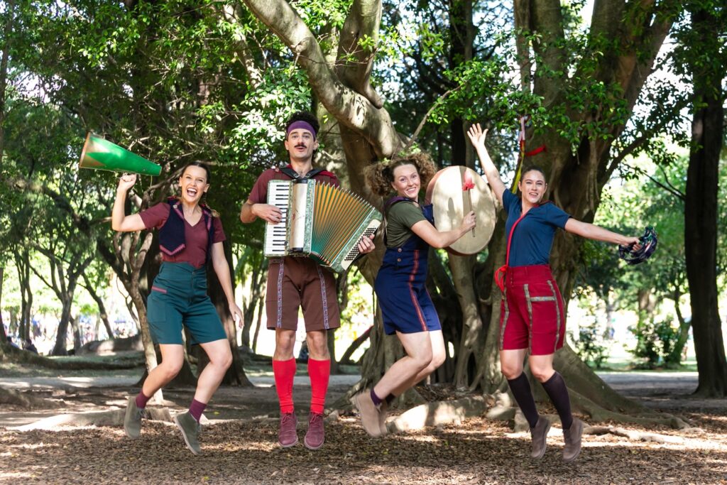 Sinopse – de forma alegre, colorida e musicada, a peça convida o público a mergulhar no universo lúdico da brincadeira. Através de canções, histórias e jogos, a narrativa é conduzida por atores e atrizes “brincantes” que tocam instrumentos e interpretam diversos personagens. O espetáculo é uma celebração das lembranças, dos encontros e da ocupação criativa de praças, ruas e espaços públicos.