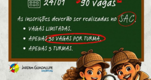 Nestas férias escolares, os pequenos vão se divertir para valer em uma atração superespecial que o Shopping Jardim Guadalupe preparou para eles! No dia 24 de janeiro, a garotada está convidada a participar do “Clube dos Detetives”, onde vão se divertir, investigar e viver uma aventura cheia de mistério! A …